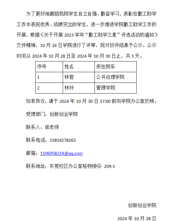 太阳成集团tyc151cc勤工助学之星初评结果的公示