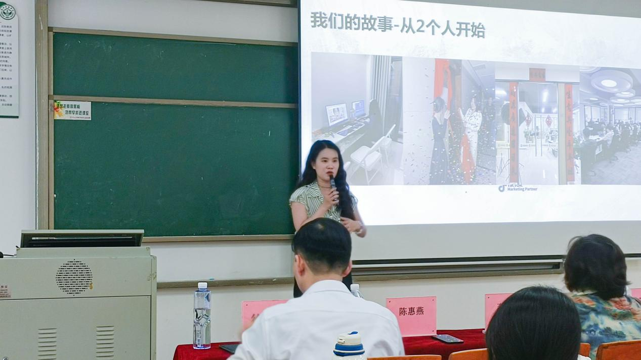 陈惠燕校友毕业后进入海底捞工作并成为大区经理。2021年凭借对短视频赛道的敏锐洞察,她毅然投身创业,创立草根出海与草根优选。克服了创业初期因风险把控不足遭遇的挫折,始终坚信内容质量是成功关键,短短几年发展成为团队成员过100人,直属团队50个,协作单位20多个,业务覆盖东南亚、中东、美国、拉美等主要国际市场,专注为全球化进程中的中国品牌提供一站式服务的东莞新兴跨境电商头部企业。