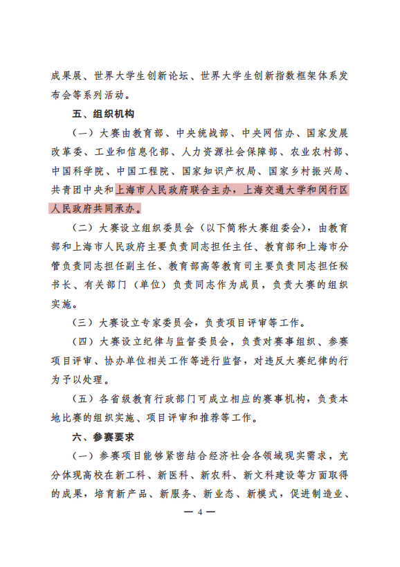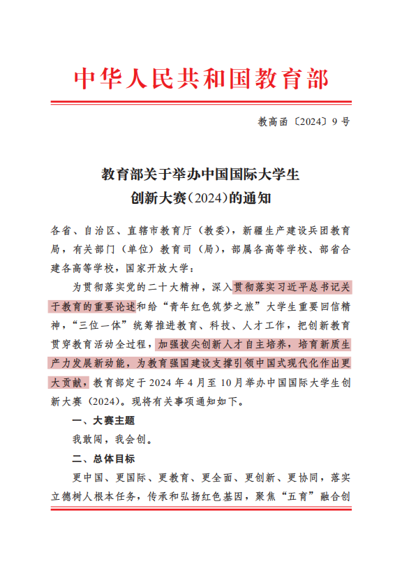 教育部太阳成集团tyc151cc举办中国国际大学生创新大赛(2024)的通知