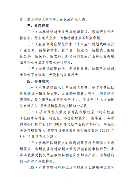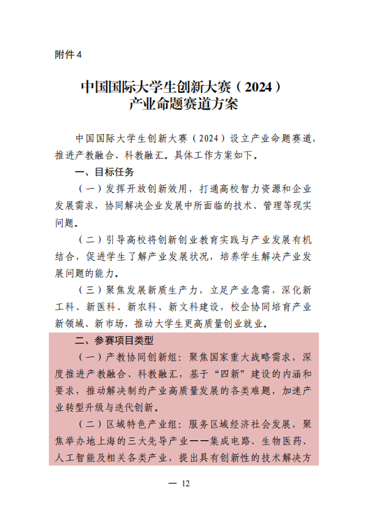 中国国际大学生创新大赛(2024)产业命题赛道方案