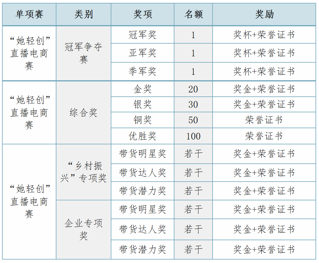 “她轻创”直播电商赛不设分组。