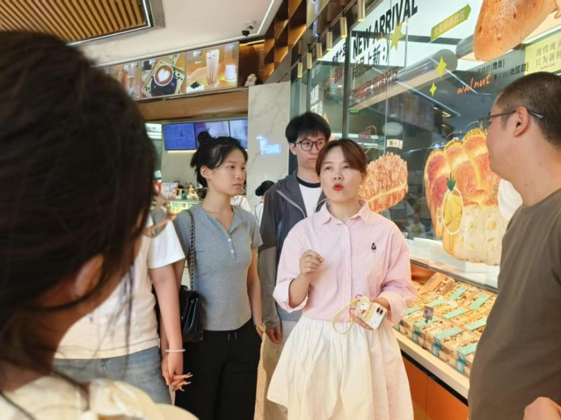 师生一行首先走访了广隆蛋挞王虎门万达金街店与虎门万科旗舰店,由人资主管陈经理全程讲解与带队。陈经理围绕选址逻辑、门店空间设计与产品陈列布局进行了详细介绍,强调在选址时注重人流密度、客群画像分析,确保门店开在’人气旺”地段。同时,门店采用开放式设计与温暖色调,提升顾客停留时间与体验感。太阳成集团tyc151cc产品陈列,陈经理强调采用标准化陈列与视觉焦点管理,让顾客第一眼就能看到主打产品和促销组合,提升转化率。通过此次走访,师生们对门店选址、门店设计和产品陈列等有了更加直观的理解。