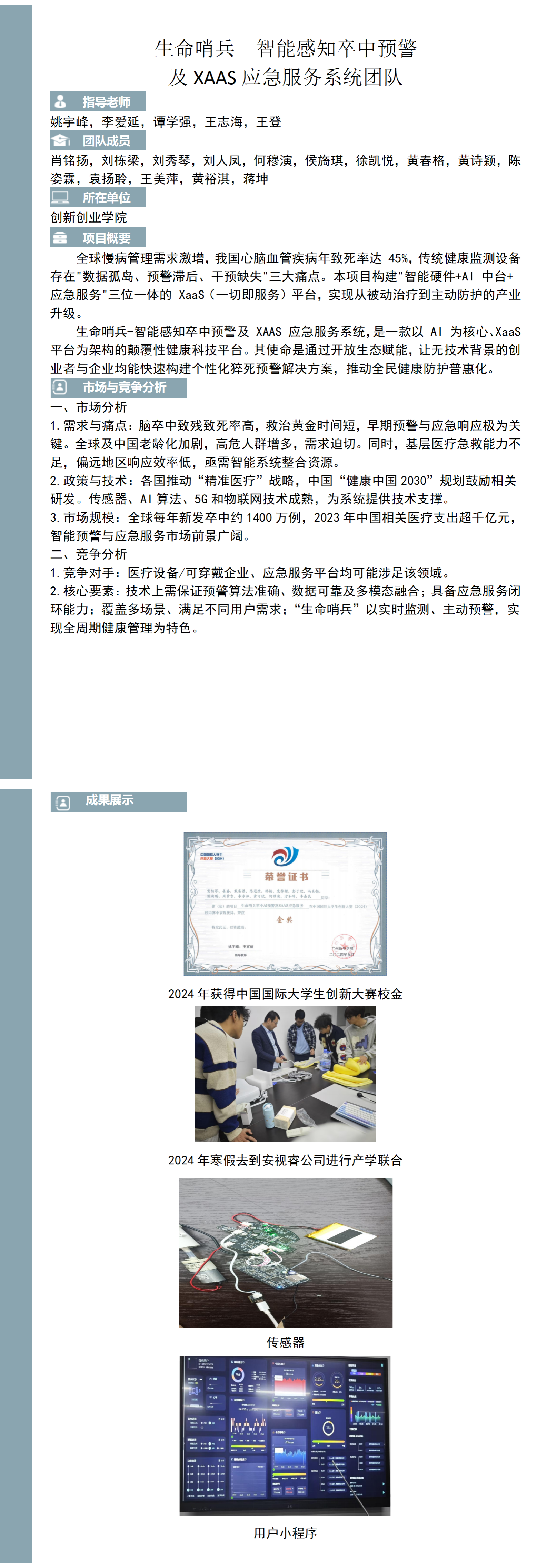 生命哨兵——智能感知卒中预警及XAAS应急服务系统团队