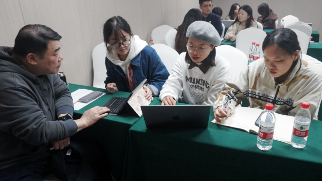 到晚上学生们依然保持着高涨的热情,邹秀峰和尚蓬勃专家分别对每个团队进行了一对一的针对性指导,耐心地听取每一个学生的意见,不时地提出问题,引导学生们深入思考。