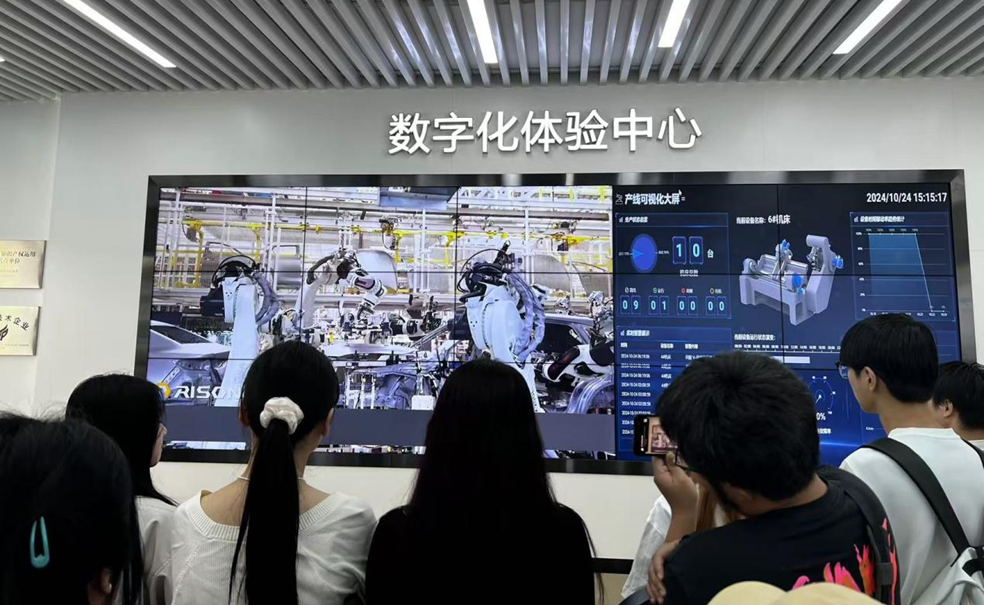 紧接着,团队成员踏入了瑞松科技的生产车间,对机器人自动化生产线进行了实地考察。瑞松科技以其工艺创新领先业界,构建了一个以教学化、信息化、智能化、网络化为核心技术的高科技企业。在参观过程中,学生们亲眼目睹了瑞松科技如何将“凝聚、责任、创新”的核心价值观融入每一个生产环节,并通过技术创新来提高生产效率和产品质量。